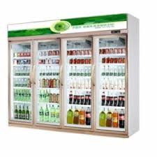✅ Description: Glass-door refrigerators used to display beverages and food items.